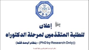 – في إطار استكمال الدورة الحالية للقبول ببرامج الدكتوراه بنظام PhD by Research Only، تعلن كلية الهندسة – جامعة وادي الشاطئ عن تحديد الخميس القادم 2 / 10 / 2025 كآخر يوم لتسجيل الطلبة عبر النظام الإلكتروني المعتمد: