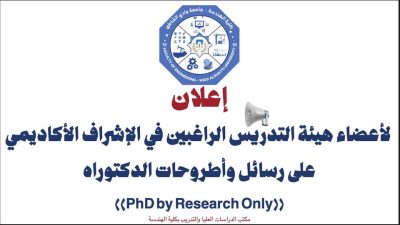 في إطار سياسة الانفتاح والتعاون الأكاديمي بين الجامعات الليبية، وسعيًا من كلية الهندسة – جامعة وادي الشاطئ لتمكين الباحثين والطلبة من استكمال دراساتهم العليا، تعلن الكلية عن فتح باب القبول لطلبات الالتحاق كمشرفين أكاديميين في برامج الدكتوراه بنظام البحث فقط (PhD by Research Only)، وذلك استجابةً للإقبال الكبير من الطلبة الراغبين في مواصلة دراساتهم الدقيقة.