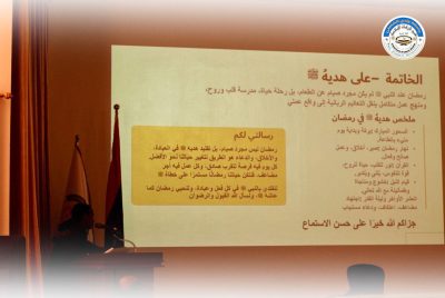 نظم قسم الدراسات الإسلامية بـكلية التربية بجامعة وادي الشاطئ ندوةً علميةً بعنوان قبسات من شهر رمضان وذلك يوم الثلاثاء الموافق 3/3/2026م، على تمام الساعة العاشرة صباحًا، بمسرح المرحوم إمحمد لعجيلي بالكلية، وبمشاركة نخبة من أعضاء هيئة التدريس وحضور عدد من الطلبة والأكاديميين.