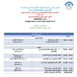 «استشراف مستقبل التكنولوجيا في ليبيا – التحديات والفرص»، بتنظيم مركز البحوث والاستشارات برئاسة الأستاذ الدكتور راسم عامر علي، وبالتعاون مع مركز المعلومات والتوثيق برئاسة الأستاذ إبراهيم سليمان الساعدي، وذلك عبر منصة Google Meet، بمشاركة واسعة من الأكاديميين والمختصين من داخل ليبيا وخارجها.
