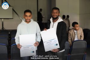 وفي ختام الندوة، قام السيد عميد الكلية، بحضور ومشاركة السيد رئيس الجامعة وأعضاء هيئة التدريس، بتكريم الطلاب الفائزين والمشاركين في مسابقة التحديات البرمجية التي أُقيمت يوم الخميس الماضي الموافق 2025/12/11م ضمن فعاليات حدث ساعة برمجة، حيث جاءت نتائج المسابقة على النحو التالي: