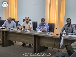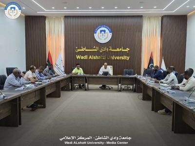 في إطار حرص رئاسة جامعة وادي الشاطئ على دعم استقرار العملية التعليمية، وتهيئة المناخ الإداري لانطلاق العام الجامعي 2025/2026، عقد أ.د. ناصر منصور أبوهمود – رئيس الجامعة المكلف – اجتماعًا تقابليًا موسعًا مع المسجل العام للجامعة الأستاذ سليمان الهاشمي، وجميع مسجلي الكليات، وذلك بمناسبة انطلاق مرحلة تسجيل الطلبة الجدد، ومتابعة سير العمل والتحديات المصاحبة لعملية القبول.