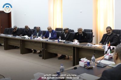اجتماع تقابلي لرئيس جامعة وادي الشاطئ مع مديري الإدارات والمراكز التعليمية