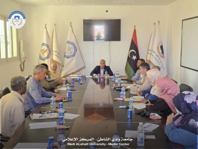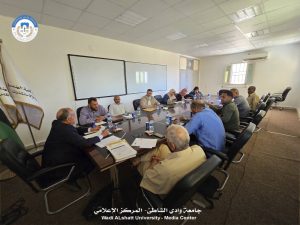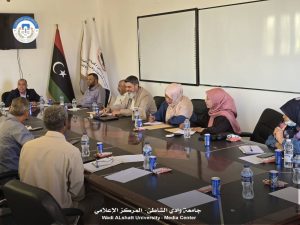 اجتماع لجنة شؤون أعضاء هيئة التدريس بجامعة وادي الشاطئ يستعرض ملفات الترقية والتكليف.