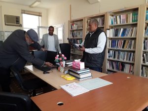 خلال الزيارة، قام الفريق بزيارة إدارة المطبوعات والنشر والمكتبة المركزية، حيث تم التطرق إلى كيفية تحفيز الطلاب وتشجيعم ارتياد المكتبات والاستفادة منها وإثراء معلوماتهم من خلال البحث على المراجع والكتب المتاحة والمتوفرة.
