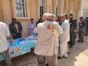 أقامت كلية البيئة والموارد الطبيعية صباح اليوم لقاء معايدة لمنتسبي الكلية بمناسبة عيد الفطر المبارك، وذلك بمقر الكلية وبحضور عدد من أعضاء هيئة التدريس والموظفين والفنيين والطلاب بالكلية. وقد كانت أجواء المعايدة أجواء لطيفة مليئة بعبارات الترحيب والتهاني بهذه المناسبة، مما يعزز من روح الإخاء والترابط بين منتسبي الكلية.