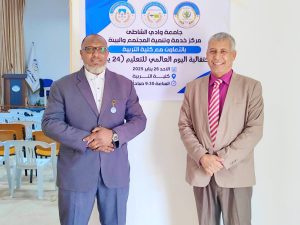 الاحتفالية نظّمها مركز خدمة وتنمية المجتمع والبيئة بجامعة وادي الشاطئ ومدير المركز د. إبراهيم الشريف، بالتعاون مع مكتب خدمة وتنمية المجتمع والبيئة بكلية التربية ومديره أ. خيري عامر السبهاوي، تحت شعار: