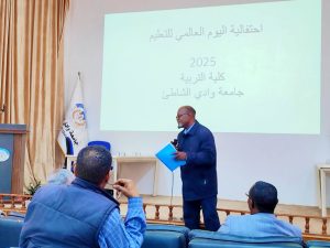 في صباح اليوم الأحد الموافق 26 يناير 2025، عند تمام الساعة 10:00 صباحًا، أقيمت احتفالية بمناسبة اليوم العالمي للتعليم على مسرح المرحوم أمحمد العجيلي بكلية التربية – جامعة وادي الشاطئ.