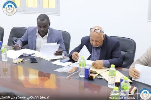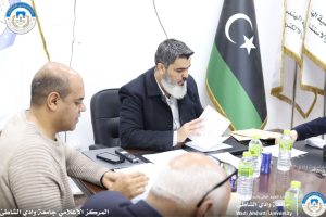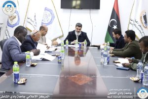 عُقد صباح اليوم اجتماع اللجنة العليا للمرحلة التمهيدية بجامعة وادي الشاطئ، برئاسة الأستاذ الدكتور السنوسي محمد عبدالله، عميد كلية العلوم، وعضوية عمداء الكليات التي تندرج ضمن المرحلة التمهيدية والمسجل العام ورئيس مركز المعلومات والتوثيق. تناول الاجتماع الذي عُقد في أجواء علمية جادة مجموعة من المحاور المهمة المتعلقة بالنتائج الدراسية وسياسات التنسيب والاستيعاب للفصل الدراسي الحالي.