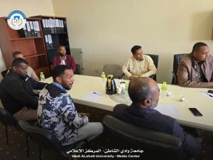 حيث شارك منذ بدء الاجتماع السيد النقيب العام ل النقابة العامة لموظفي التعليم العالي الاستاذ صلاح السويح هذا الاجتماع بربط مباشر عن طريق منصات التواصل الاجتماعي و افتتح كلمته بالشكر و الثناء على نقابة موظفي جامعة وادي الشاطيء و أنها من افضل النقابات التي تؤدي دورها على الوجه المطلوب و أثنى أيضا على ادارة الجامعة كاملة و اخص بالذكر السيد رئيس الجامعة لما يقدمه من جهد و دعم للعمل النقابي و كافة العاملين بالجامعة ثم ناقش مع الحضور بعض من بنود جدول الأعمال و الكثير من المواضيع الهامة و الإجراءات المتخذة و المقترحات المقدمة للوزارة بشأن موظفي التعليم العالي و ناقش معه الحضور بشكل مستفيض الحقوق و الواجبات للموظف و كل ما من شأنه الرفع من المستوى العلمي و العملي بالجامعة و استمر معه النقاش قرابة 45 دقيقة