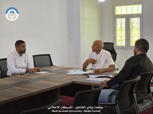 اليوم الإربعاء الموافق 18 / 6 / 2025 ف على تمام الساعة الثانية عشر ظهرا بمبنى الإدارة 2 ( مجمع المراكز الإدارية بالجامعة ) في صالة الإجتماعات عقد الاجتماع الأول للجنة المكلفة من قبل رئيس جامعة وادي الشاطيء بقرار رقم ( 144 ) لسنة 2025 بشأن تشكيل لجنة وتحديد مهامها وكان ذلك بحضور الآتي :