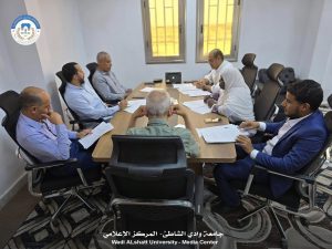 عُقد صباح اليوم بمكتب السيد رئيس جامعة وادي الشاطئ الاجتماع التحضيري الأول لندوة “حقوق الإنسان والتنمية في ليبيا: العدالة كمدخل لتحقيق الاستقرار والتوازن المجتمعي”، وذلك برئاسة السيد الدكتور عبدالسلام محمد المثناني، رئيس الجامعة، وبحضور السادة المتحدثين في الندوة، المنسق العام، وأعضاء اللجنة التحضيرية.