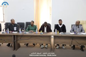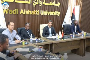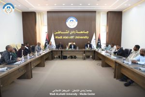 عقد اليوم الاربعاء الموافق 2026/4/8 عند الساعة 11:00 صباحا في قاعة الاجتماعات بإدارة الجامعة الاجتماع العادي الاول لنقابة موظفي جامعة وادي الشاطئ برئاسة نقيب الموظفين محمد ابوالقاسم مخزوم و النائب عبدالكريم بركة نوير و اعضاء المكتب التنفيذي محمد عبدالقادر الزوي — صالح امحمد الصمباني — عبدالله سعد عبدالله