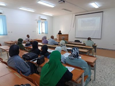 المحاضرة الثانية كانت بعنوان ” التنوع الحيوي” ألقتها الأستاذة آمنة العريفي، عضو هيئة التدريس بقسم الصحة والسلامة المهنية بالكلية. وقد تحدثت الأستاذة آمنة عن تاريخ الاحتفال باليوم الدولي للتنوع الحيوي، وقدمت شرحاً وافياً عن أهمية التنوع الحيوي وأهم الأخطار التي تهدده. وكذلك خصصت جزءاً من المحاضرة للحديث عن التنوع الحيوي في ليبيا، وأهمية المحافظة على ما هو موجود وخاصة مع زيادة المهددات مثل الأنشطة البشرية والتغير المناخي، خاصة وأن أغلب مساحة ليبيا هي مناطق جافة. كما تم نشر مطويات عن التنوع الحيوي وأهمية الاحتفال بهذا اليوم، وقد وزعت هذه المطويات بداخل الكلية وخارجها.