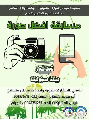 بمناسبة اليوم العالمي للبيئة، يسر كلية البيئة والموارد الطبيعية أن تدعوكم للمشاركة في مسابقة أفضل صورة فوتوغرافية.