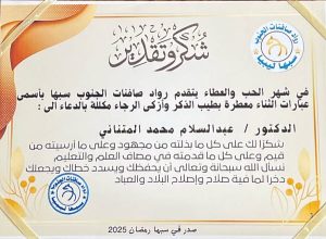 وبهذه المناسبة، تتقدم جامعة وادي الشاطئ بخالص التهاني للدكتور عبدالسلام المثناني والدكتور محمد ميمون الهمالي، متمنيةً لهما دوام التوفيق والنجاح.