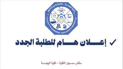 تعلن كلية الهندسة أن باب القبول مازال مفتوحًا للعام الجامعي 2025/2026، وعلى جميع الطلبة الإسراع بالتسجيل عبر الرابط التالي: