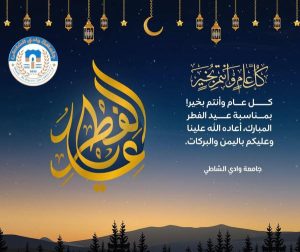 بمناسبة حلول عيد الفطر المبارك، تتقدم جامعة وادي الشاطئ بأسمى آيات التهاني وأصدق عبارات التبريكات إلى كافة منتسبي الجامعة من أعضاء هيئة التدريس، والموظفين، والطلاب، وإلى الشعب الليبي الكريم، وإلى الأمة الإسلامية جمعاء.