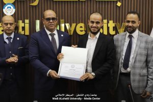 في مشهدٍ امتزجت فيه هيبة القانون بروح الوفاء، اختتمت جامعة وادي الشاطئ فعاليات “يوم المعرفة” بتنظيم جلسة حوارية معمّقة ناقشت واقع القضاء في ليبيا، أعقبتها مراسم تكريم لثلة من رموز العمل الأكاديمي والقضائي، وذلك بحضور رئيس الجامعة الأستاذ الدكتور ناصر أبوهمود، ونخبة من القضاة والحقوقيين والمهتمين بالشأن القانوني.