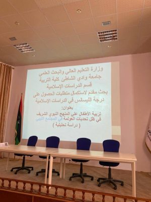 في إطار استعدادات طلاب قسم الدراسات الإسلامية بكلية التربية – جامعة وادي الشاطئ للتخرج، عُقدت يوم الأحد الموافق 27 إبريل 2025 جلسة علمية علنية لمناقشة مقترحات مشروعات التخرج.
