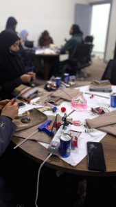 وقد بدأت أمس بقاعة التدريب في سكن الطالبات الجامعي فعاليات الدورة التدريبية، التي تستمر حتى يوم الخميس، بقيادة المدربة الأستاذة سعاد الذيب، حيث تتضمن تدريباً عملياً على مهارات الحياكة والتطريز، إلى جانب تعريف المشاركات بأساسيات العمل اليدوي وأهميته كمهارة قابلة للتطوير مستقبلاً لتكون مجالاً للإنتاج والإبداع.