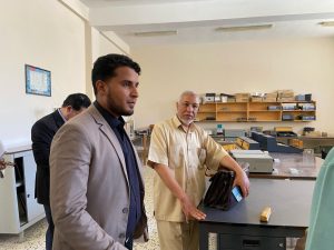 قام الدكتور خالد أبوبكر الغناي، وكيل الشؤون العلمية بجامعة وادي الشاطئ ورئيس الجامعة المكلف، صباح اليوم بزيارة رسمية إلى كلية الهندسة، رافقه فيها الأستاذ عبدالباسط عبدالله ناجم، مدير إدارة الموارد الذاتية بالجامعة، وذلك في إطار متابعة سير العملية التعليمية والاطلاع على واقع المعامل الهندسية بالكليّة.