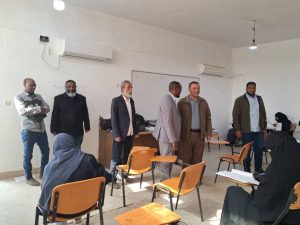وكان في استقبالهم السيد وكيل الشؤون العلمية بكلية التربية الأستاذ: أبوالقاسم محمد أبوعزوم، إلى جانب أعضاء لجنة الامتحانات بالكلية. وشملت الزيارة جولة ميدانية على قاعات الامتحانات، تم خلالها متابعة سير الامتحانات والاطلاع على الإجراءات التنظيمية المتبعة، إضافة إلى الوقوف على الاحتياجات والمتطلبات اللازمة لضمان أداء الامتحانات على أكمل وجه.