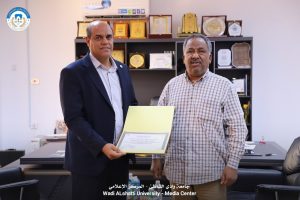 زيارة مدير فرع الهيئة الوطنية للبحث العلمي بالمنطقة الجنوبية إلى جامعة وادي الشاطئ وتكريم رئيسها