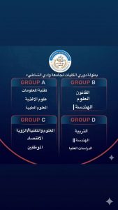 وقد أسفرت القرعة عن تقسيم الفرق المشاركة إلى أربع مجموعات، ضمّت كليات الجامعة إلى جانب مشاركة مميزة من بعض الكليات التقنية بالمنطقة، في خطوة تعزز أواصر التعاون والتواصل بين المؤسسات التعليمية، وتضفي بعداً تنافسياً أوسع على البطولة.