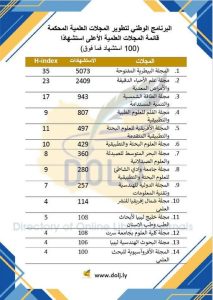 في إطار متابعـة جامعة وادي الشاطئ لمسيرة النشر العلمي وتطوير مجلاتها الأكاديمية، سجّلت مجلة الجامعة للعلوم التطبيقية إنجازًا جديدًا بحصولها على الترتيب الثامن محليًا في قائمة المجلات العلمية الأكثر استشهادًا، وفق التصنيف الصادر عن البرنامج الوطني لتطوير المجلات العلمية المحكمة (للمجلات التي تجاوزت استشهاداتها 100 فما فوق).