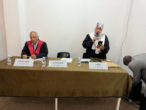 وتكوّنت لجنة المناقشة من الدكتورة غزلان محمد الزروق – مشرفًا ومقرّرًا، والأستاذ الدكتور امسيب مصباح امسيب – مناقشًا داخليًا، والدكتور منصور علي الصغير من جامعة سبها – مناقشًا خارجيًا.