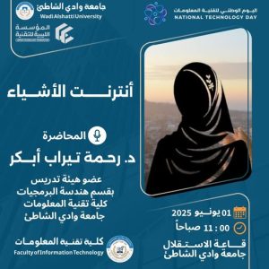 Eman Almahdi يونيو 1, 2025 الأخبار, كلية تقنية المعلومات #اليوم_الوطني_لتقنية_المعلوماتمن ضمن فعاليات الجلسة العلمية للحدث.#كلية_تقنية_المعلومات#جامعة_وادي_الشاطئ عدد المشاهدات: 0